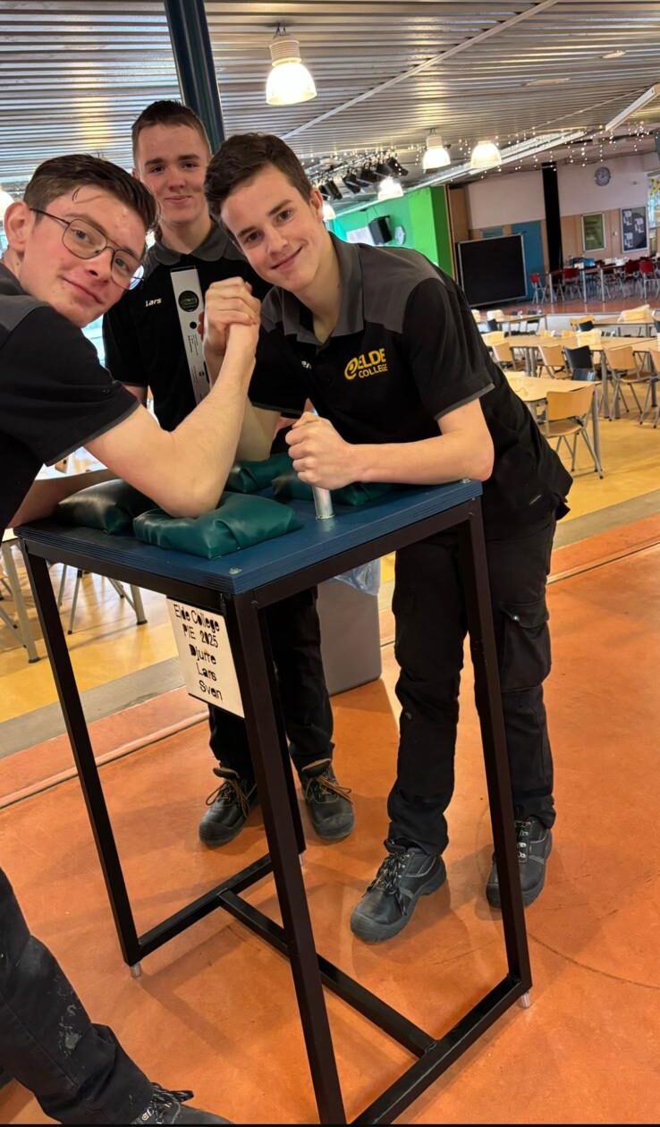 Binnen het profiel Produceren, Installeren en Energie hebben drie vierdejaars leerlingen een armdruktafel ontworpen en gemaakt. Met dit project oefenden ze niet alleen hun technische vaardigheden, maar werkten ze ook aan een tweede doel: het bevorderen van plezier en een goede sfeer tussen leerlingen.